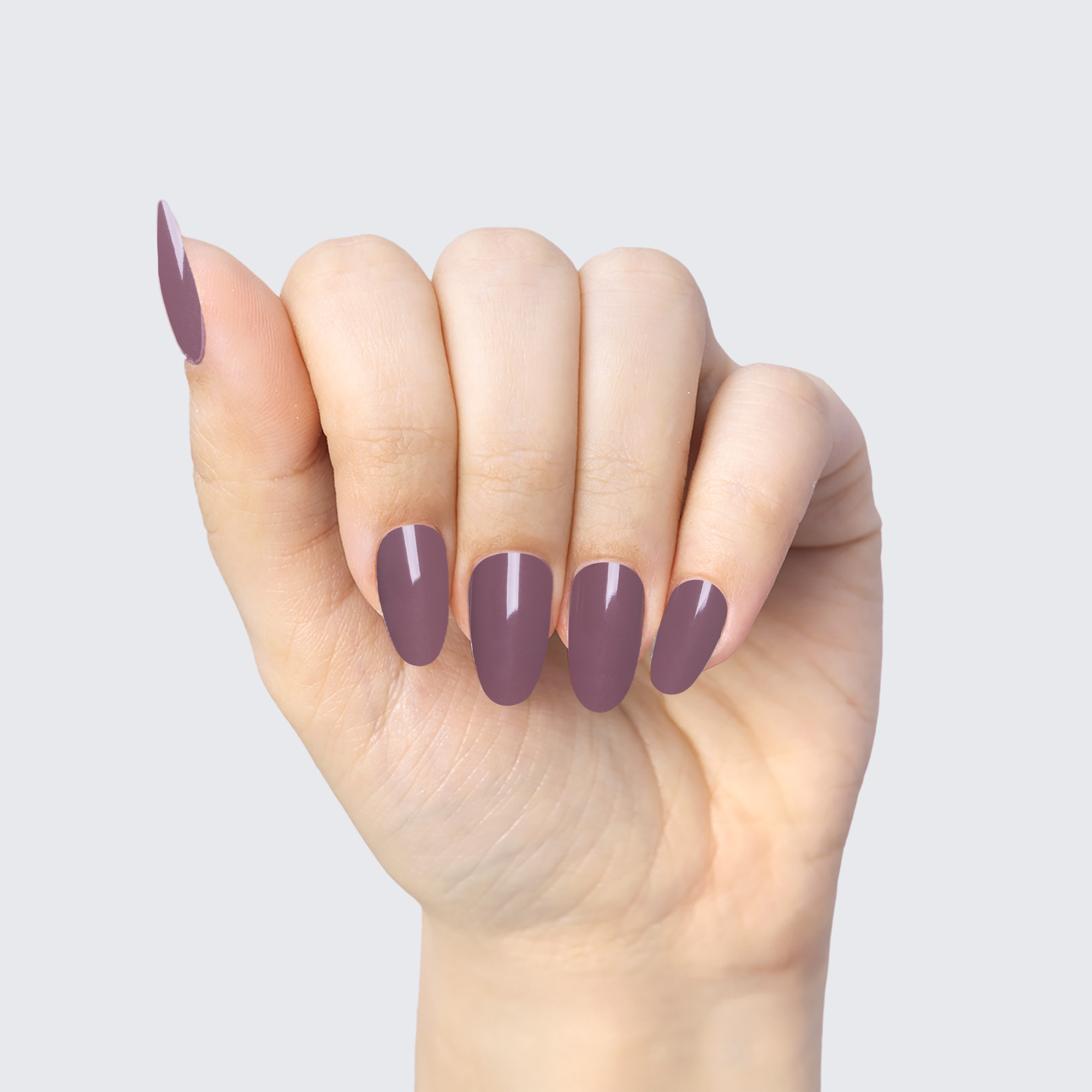 Mauve. Muted. Medium-dark. Opaque. Warm undertone.